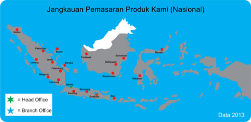 Selain kantor pusat Kami yang beralamat di Jl. Salemba Raya No.19 Jakarta 10440, Kami juga memiliki kantor Cabang di Pangkalpinang dan di Surabaya, kedua kantor cabang Kami ikut membantu proses pendistribusian barang dari kantor pusat dengan menyiapkan stock barang yang memadai.